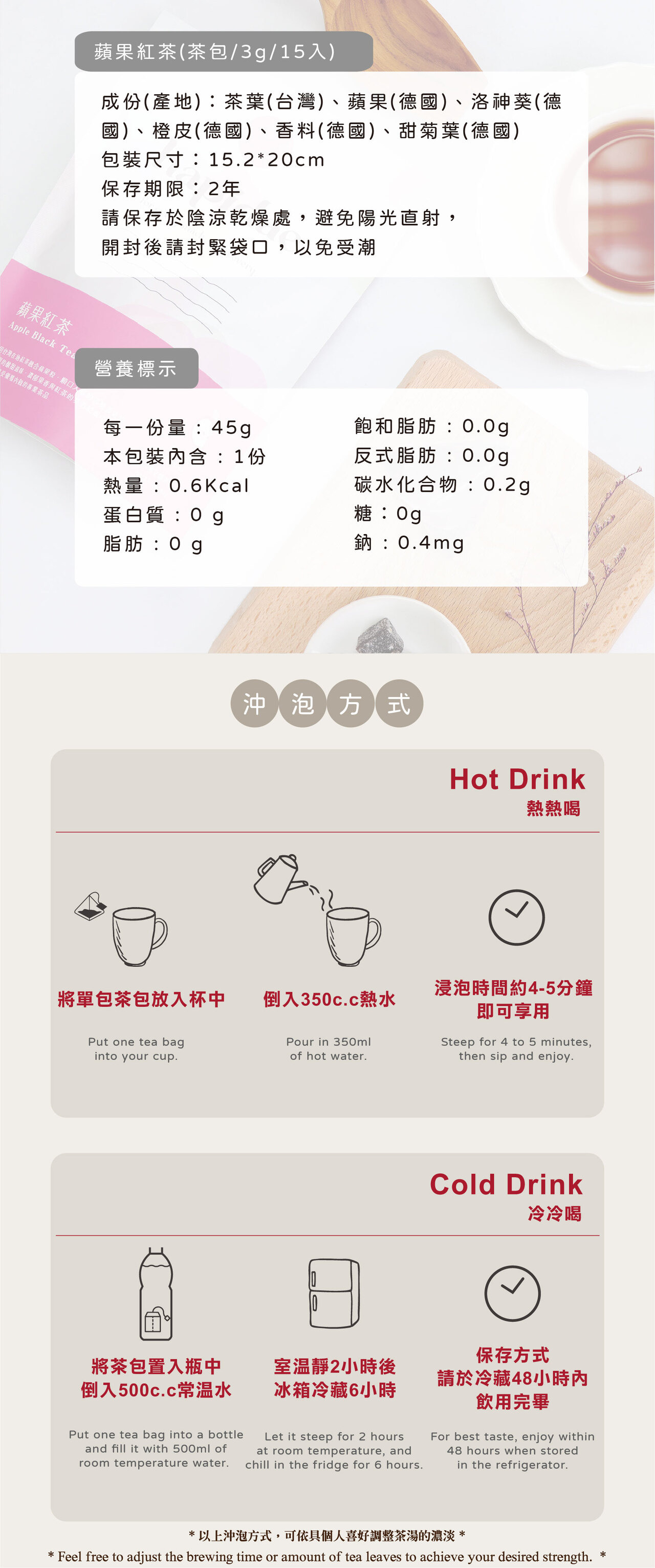 ・蘋果粒與花草茶融合,果香與茶香完美交織