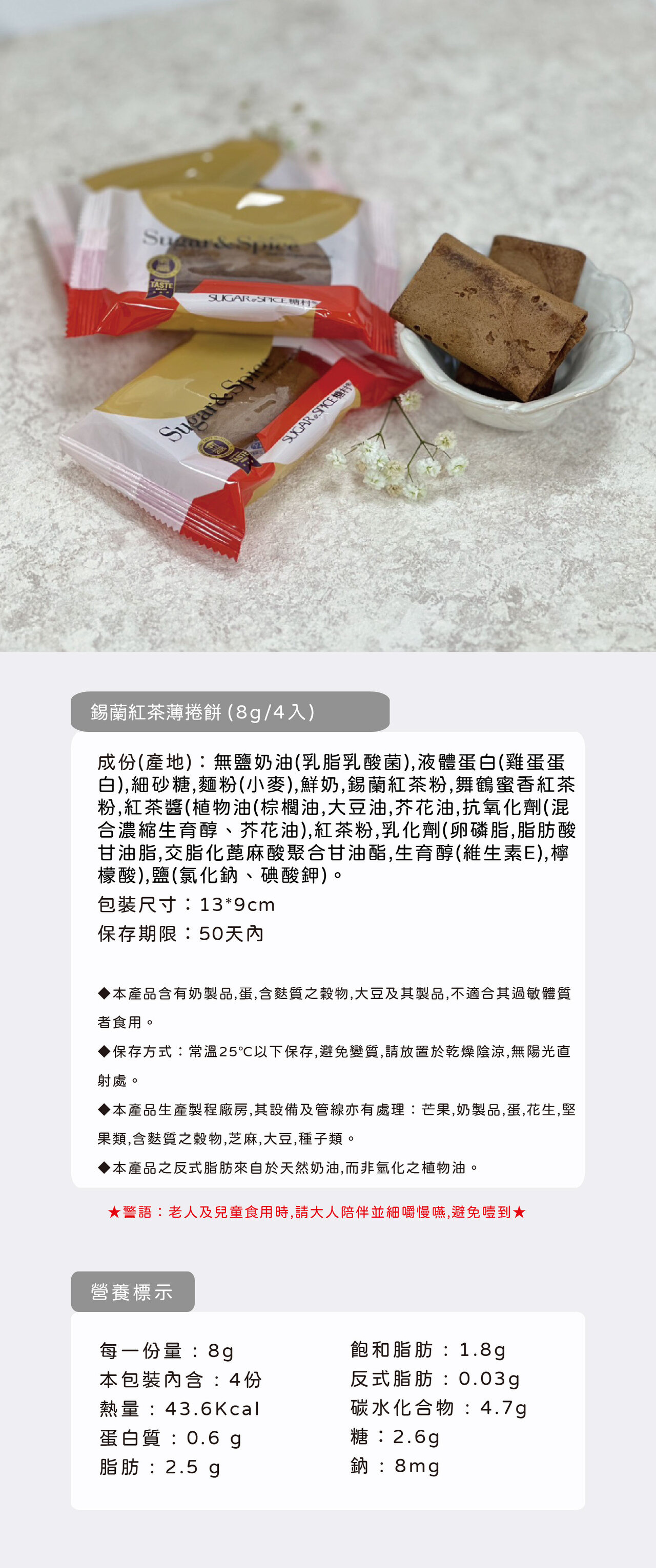 酥脆香濃的糖村紅茶捲搭配清香桂花紅茶,果香與茶韻層次豐富。自用或送禮都展現優雅品味。