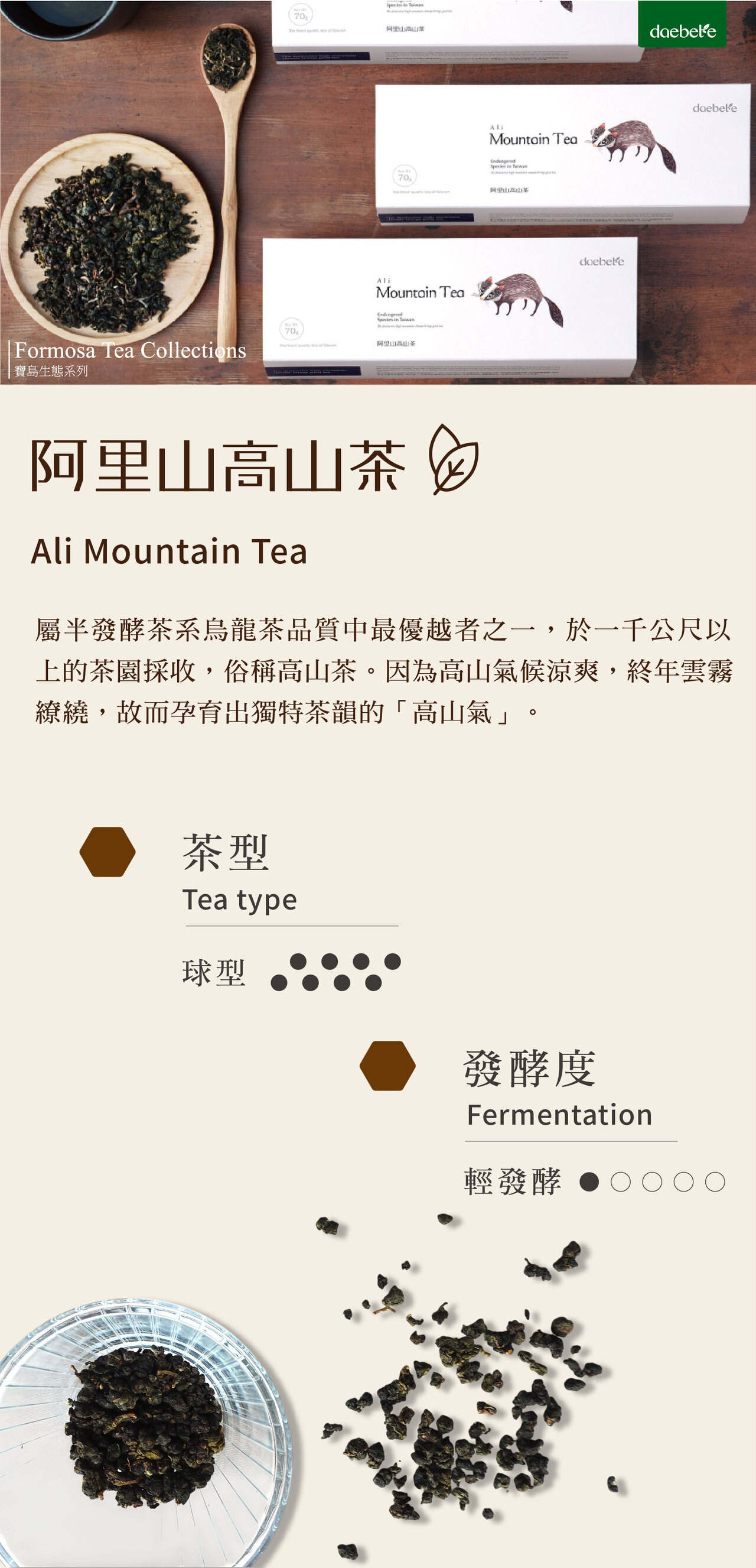 •台灣高山茶代表,生長於 1000m+ 雲霧茶園