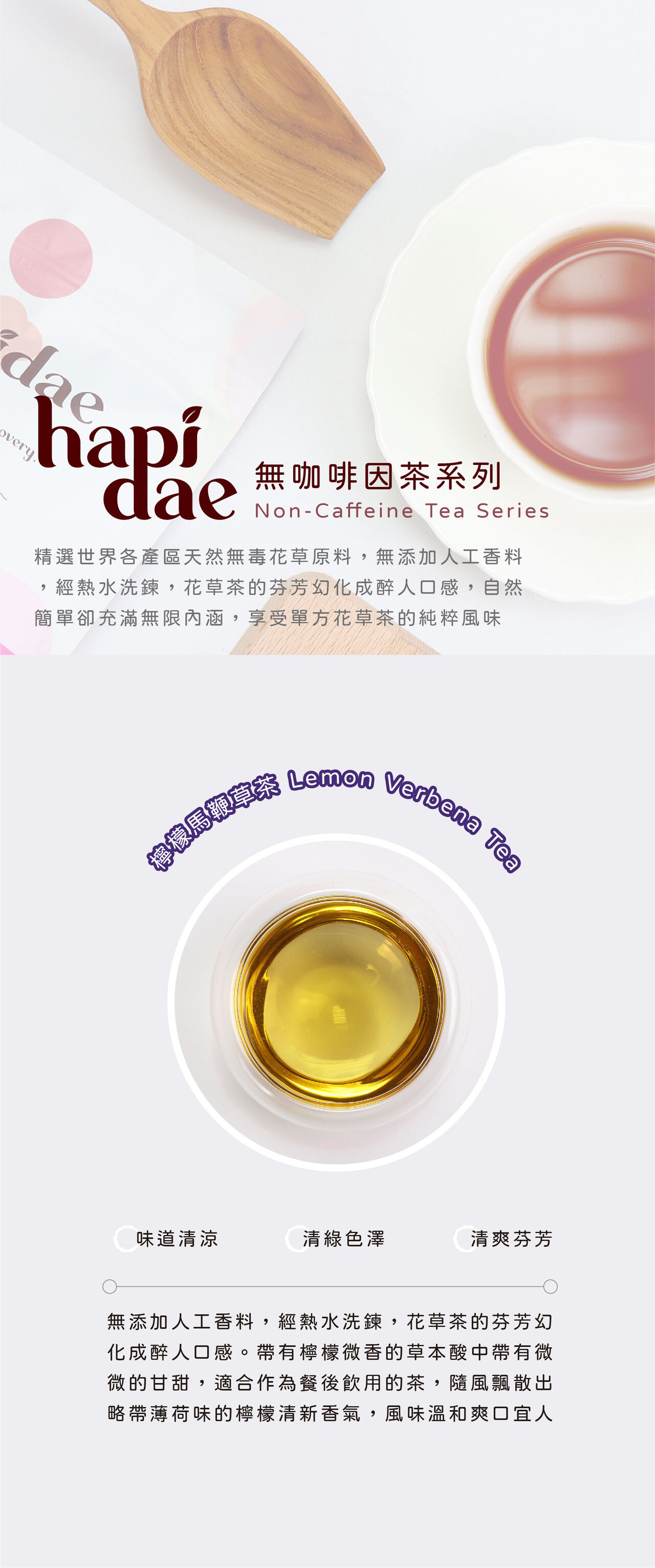想喝茶又不想咖啡因打擾?hapidae 檸檬馬鞭草茶幫你解決!我們精選世界各地天然無毒花草,完全不添加人工香料,