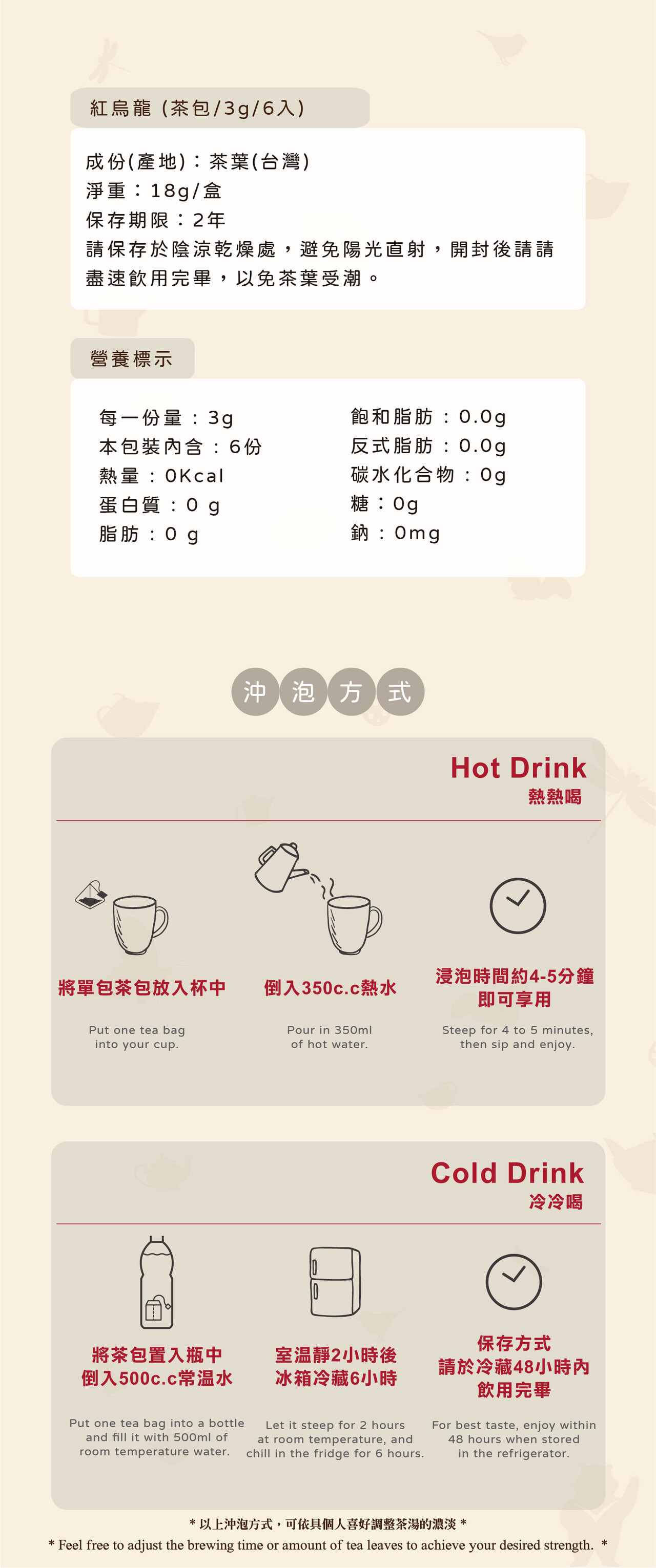 選用台灣紅烏龍茶菁,中度發酵工藝讓茶湯呈現醇厚而圓滑的口感,入口後炭焙香氣緩緩展開,帶出經典古早味焙香層次,溫潤耐喝、不張揚,卻很有存在感。