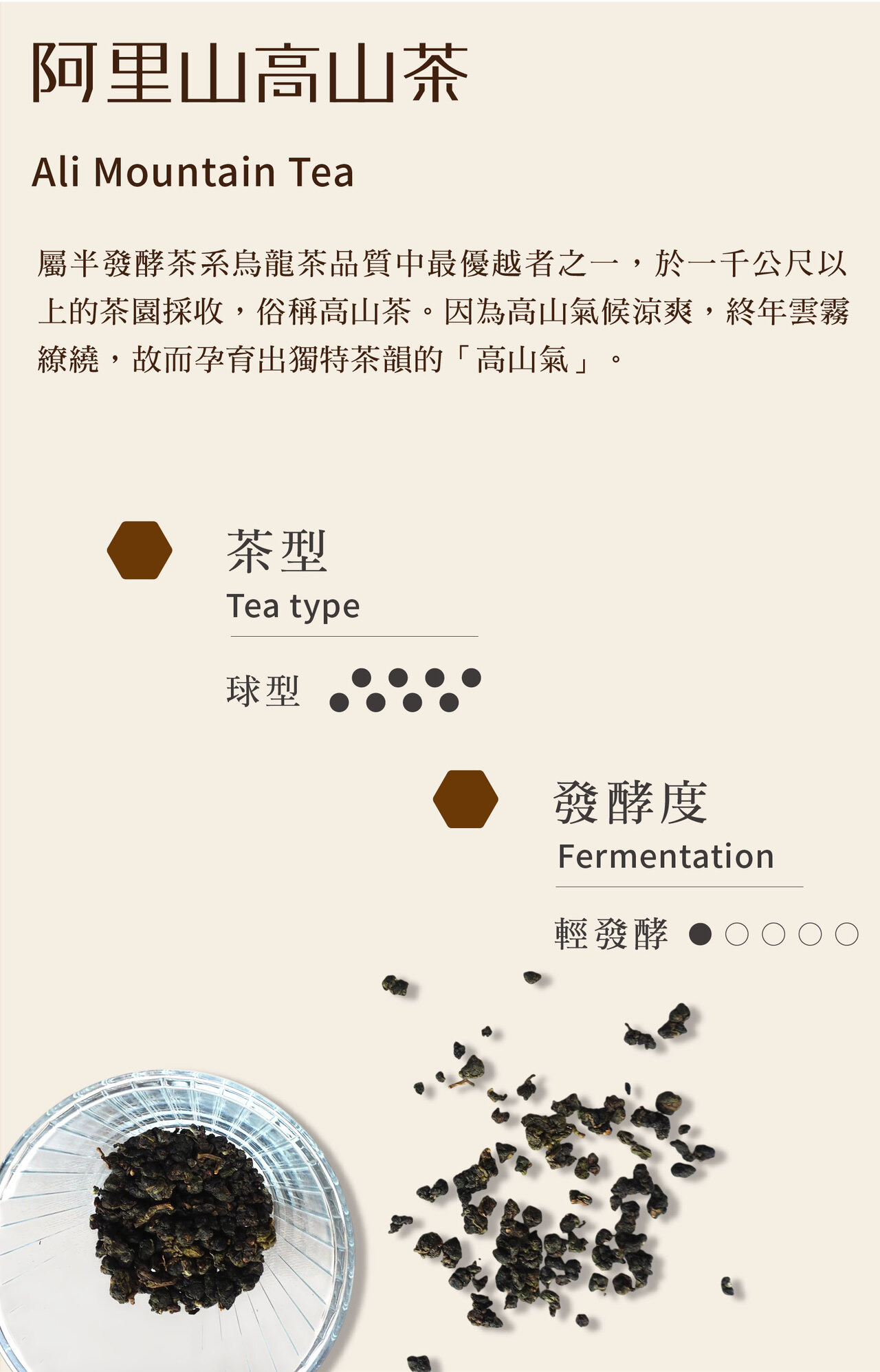屬半發酵茶系烏龍茶品質中最優越者之一,於一千公尺以上的茶園採收,俗稱高山茶。